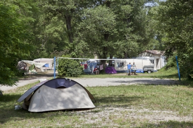 Schaduwrijke standplaatsen van 80 -120m², gescheiden door hagen van planten of uitziende op weidse ruimten, ideaal voor groepen kinderen, jongeren en gezinnen. Elektrische aansluitingen volgens EU-normen.